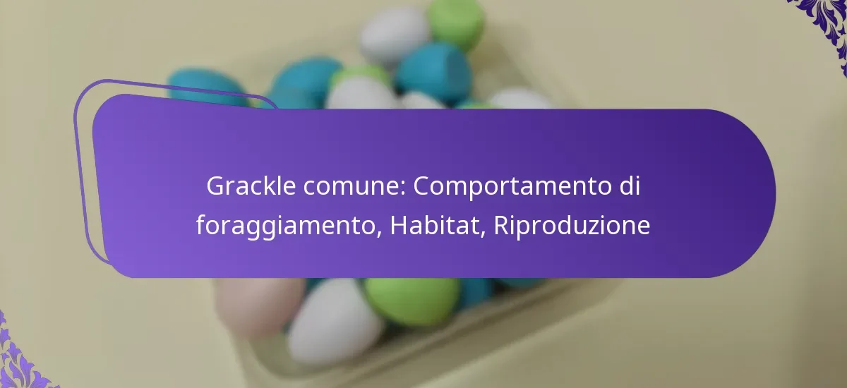 Il Grackle Comune è un uccello altamente adattabile noto per il suo comportamento di foraggiamento diversificato, che gli consente di prosperare in vari habitat, inclusi ambienti urbani e rurali. Con abitudini alimentari opportunistiche, sfrutta efficacemente le fonti di cibo disponibili, mostrando pratiche di riproduzione uniche caratterizzate da elaborate esibizioni di corteggiamento e ruoli genitoriali dedicati durante i mesi più caldi.