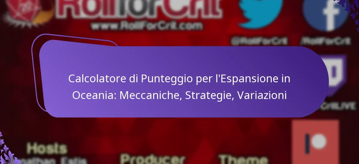 Le meccaniche di punteggio per l’Espansione Oceania si concentrano su varie azioni dei giocatori e sul loro impatto sui punteggi complessivi. Comprendere queste meccaniche è fondamentale per massimizzare i punti e raggiungere il successo nel gioco.